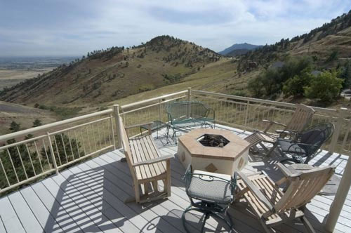 Nestled in the foothills north of Boulder, this home boasted spectacular views of the eastern plains; however, the existing balcony offered only a limited field of vision and could accommodate very few people. We worked with the homeowners to extend their recreational and entertainment space, designing and creating 1,200 square feet of new decks outside the lower and main floors of their home. Highlights of the project include a sunken hot tub on the lower deck and a gas fire pit on the upper deck. The Trex deck planks and custom-designed tubular steel railings ensure low-maintenance and high-performance while letting the view take center stage.